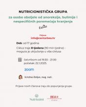 Online nutricionistička grupa za anoreksiju, bulimiju i nespecif.poremećaj hranjenja 22.1.2026.
