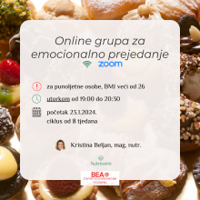 Pridružite nam se u novom ciklusu naše online GRUPE ZA EMOCIONALNO PREJEDANJE pod vodstvom nutricionistice Kristine Beljan.