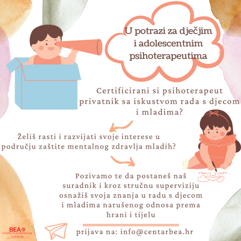 Pozivamo psihoterapeute certificirane za rad s djecom i mladima na suradnju sa Centrom za poremećaje hranjenja BEA.