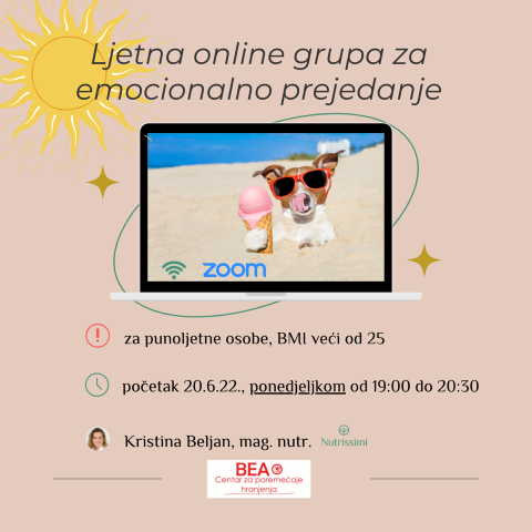U ponedjeljak, 20.6.2022. počinje nova online grupa za emocionalno prejedanje u Centru BEA pod vodstvom nutricionistice Kristine Beljan.