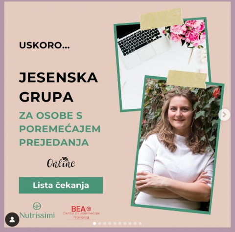 Pribilježite se na listu čekanja jesenske online GRUPE ZA OSOBE S POREMEĆAJEM PREJEDANJA pod vodstvom magistre nutricionizma Kristine Beljan.